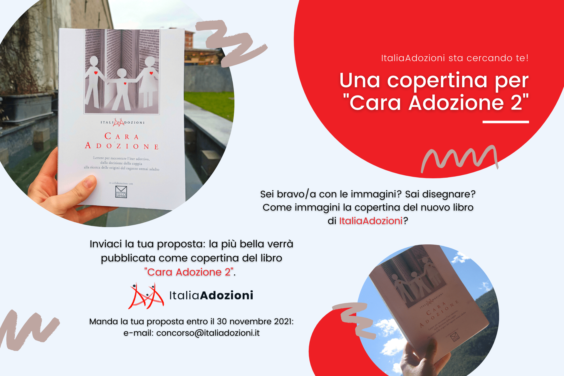 Se hai voglia di cimentarti e provare a realizzare la tua prima copertina puoi provare a metterti in gioco con questo concorso bandito da Italia Adozioni per disegnare la copertina del libro Cara Adozione 2