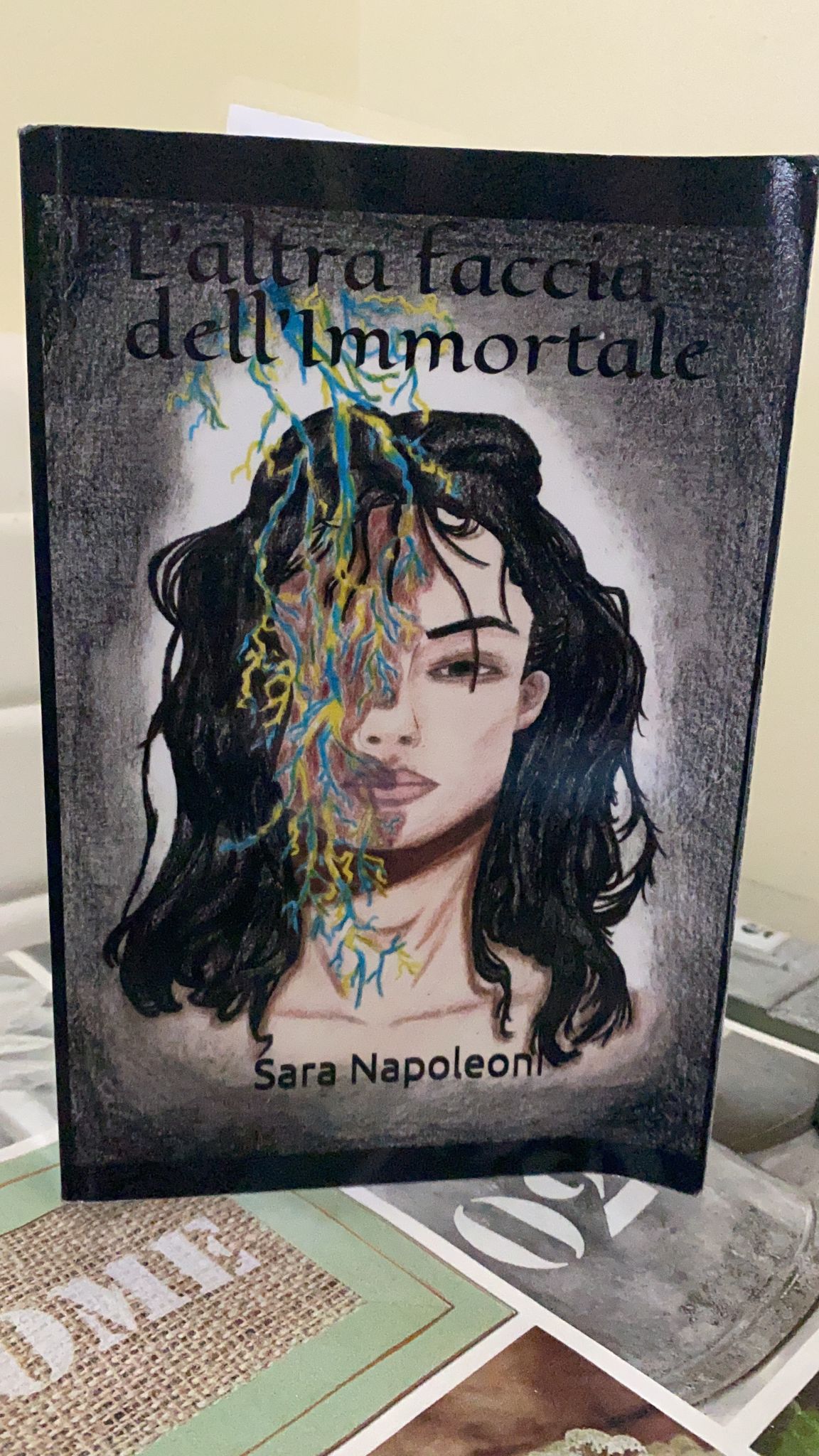 Il titolo del libro è :”L’altra faccia dell’immortale”, è una storia di quattro ragazzi da sempre legati da una forte amicizia. Si parla di due coppie, dove ognuno ha un potere magico legato ad uno degli elementi:Joy rappresenta l’acqua il suo compagno la terra; mentre l’altra coppia rappresentavano uno l’aria e l’altro il fuoco e vivono una vita monotona tra vari impegni lavorativi. La storia di Joy e del suo ragazzo è sul filo di un rasoio e proprio in questo momento così critico che arriverà una terza persona: un ragazzo che avrà come potere quello dell’elettricità e Joy si innamorerà. Tutto avvolto da un’atmosfera ricca di colpi di scena che lasciano il lettore sulle spine fino alla fine .