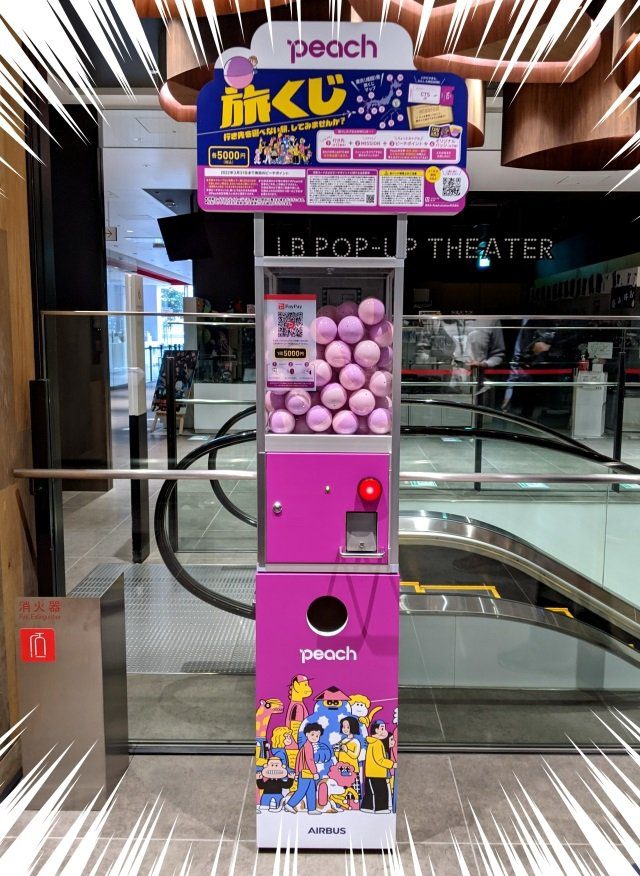 La compagnia aerea Peach Aviation ha creato un proprio distributore ed ha inserito nelle palline biglietti per propri voli.