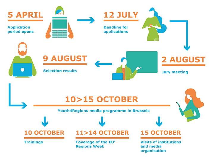 Tra le candidature ricevute saranno selezionati un gruppo di vincitori, che saranno invitati a Bruxelles durante la Settimana europea delle regioni e delle città, in programma nel mese di ottobre, dove potranno seguire corsi di formazione, avere giornalisti affermati come tutor e lavorare con loro in sala stampa e visitare le istituzioni dell’UE e le organizzazioni dei media.