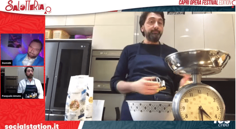 Intanto Pasquale Amato si trasforma nello Chef Paskitchen, ci prepara un piatto della tradizione pasquale napoletana che richiede una lunga preparazione ma con un risultato garantito: Il famoso casatiello.