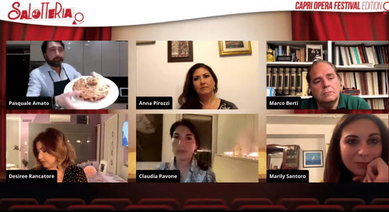 Il soprano di fama mondiale Anna Pirozzi, amica affezionata del Capri Opera Festival, che proprio in questa puntata festeggia un compleanno particolare , perchè il 1° aprile 2020 , in piena emergenza sanitaria, per la prima volta è stata ospite del Salotto virtuale del Capri Opera Festival
