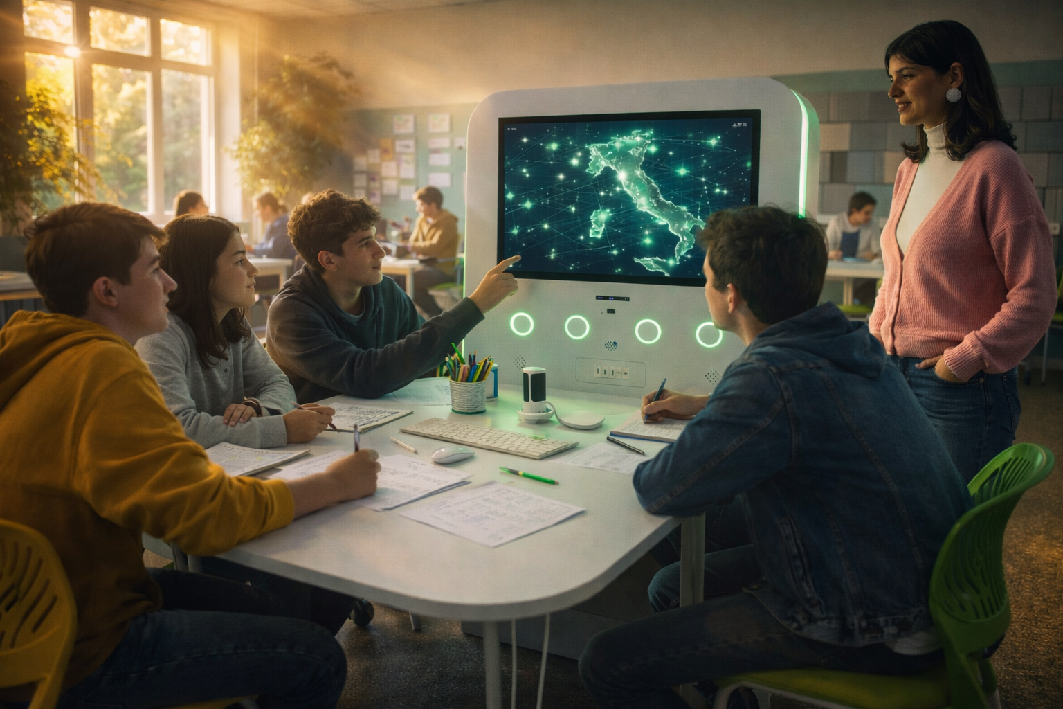 Per sviluppare nuove forme di apprendimento cooperativo. Studenti e docenti possono lavorare insieme su progetti creativi, podcast, video educativi e attività di problem solving.