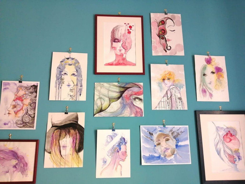 Valentina è principalmente un’acquerellista ma a questa tecnica ci è arrivata dopo anni di sperimentazione, non ricorda quanto tempo fa è cominciato l’amore per l’arte, ma sicuramente è nato in famiglia.