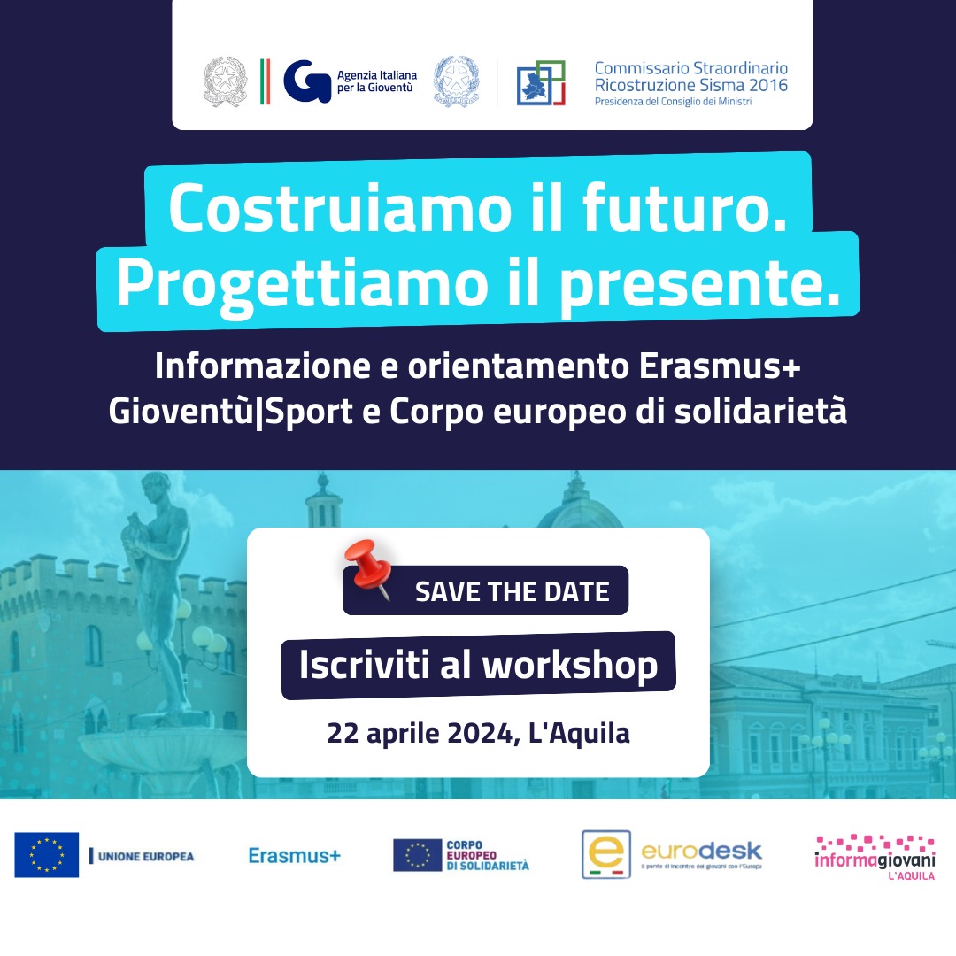 Costruiamo il futuro , progettiamo il presente è percorso di informazione e formazione che si terrà a L’Aquila sui programmi europei dedicato ai giovani delle aree colpite dal sisma.